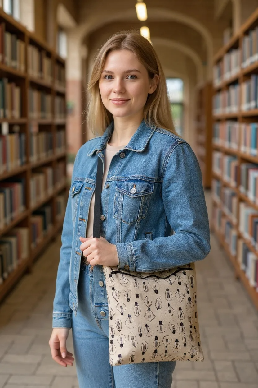 Stitchin’ by M.- Large durable tote bag, external zipper pocket